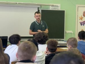 Афанасий сейчас учится на 4‑м курсе в ГБПОУ «Конаковский колледж» и с удовольствием поделился с ребятами своим опытом: рассказал об особенностях учёбы в колледже; откровенно ответил на десятки вопросов школьников; поделился личными достижениями и историями из студенческой жизни.