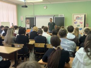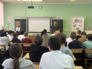 По инициативе советника по воспитанию Будехиной О. Г. состоялась встреча учащихся 8В и 9В классов с выпускником нашей школы — Богдасаровым Афанасием.