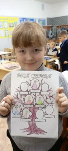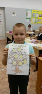 Завершением урока стало творческое задание: ребята представили своим одноклассникам семейные древа, отражающие историю и ценности их родных.