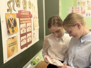 Торжественная линейка, организованная советом старшеклассников, познакомила ребят с историей российского герба, раскрыв его символическое значение и роль в истории нашей страны 🤗 Особенное внимание привлекла интерактивная стенгазета, созданная учащимися 5В класса. Их творческая работа позволила школьникам глубже понять значимость геральдического наследия России 🖼️