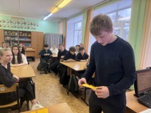 В честь праздника советник по воспитанию Будехина О. Г. устроила для учащихся 9 «Б» класса весёлый и необычный сюрприз — юмористический экзамен!