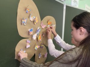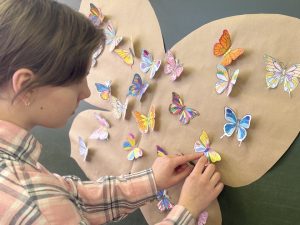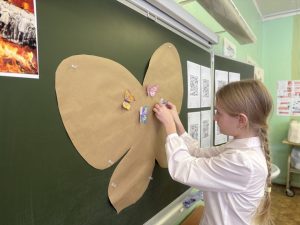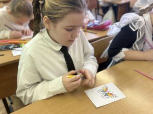 В завершение мероприятия ученики приняли участие в трогательной акции. Мы создали ярких, разноцветных бабочек — не просто из бумаги, а из нашего тепла и обещания помнить.