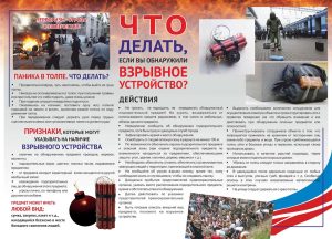 Памятка «Что делать при обнаружении взрывных устройств»
