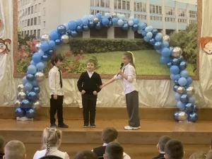 Ведущие праздника — Астахов Владислав (11а класс) и Бушманова Кристина (10 класс) — сумели создать атмосферу веселья и радости.