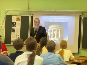 Сегодня в нашей школе прошла встреча, которая ознаменовала собой открытие декады Арсеньевских чтений. К ребятам пришёл священник Виктор Никитенко, клирик храма Сорока мученников Севастийских и больничного храма в честь иконы Божьей Матери Целительницы.