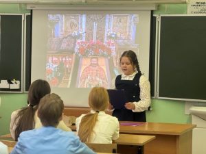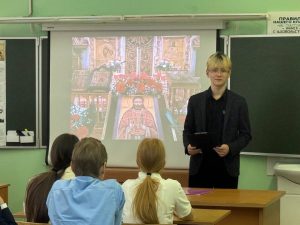 Он рассказал об истории возникновения чтений, поговорил с учениками о вызовах времени, о том, как правильно выбирать жизненные ориентиры. Очень интересные выступления приготовили и учащиеся нашей школы, и в лучших традициях тверских семей, помогали им в этом их замечательные мамы. Ерёмина Софья из 5В класса подготовила доклад о житие священномученика Арсения Троицкого, Башенев Илья, ученик 10А класса прочёл стихотворение Д.Ростовского и Г. Томашевской «Угодники Божьи», а самой маленькой докладчицей была Ксения Болоненкова из 4А класса с рассказом о Ксении Петербургской. В завершении встречи ребята послушали повествование о жизни и деятельности великого русского учёного и выдающегося педагога С.А.Рачинского.