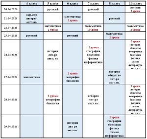 - 4 -х классов — по русскому языку, математике и окружающему миру, иностранному языку — в штатном режиме;